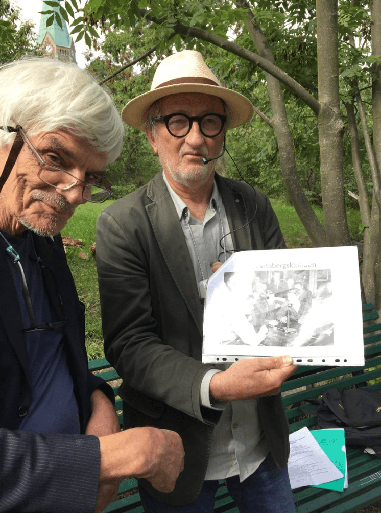 Kent Josefsson, Fogelström-sällskapets ordförande, och kulturprofilen Lars Epstein berättade om ungdomsklubben och karaktärerna på denna ikoniska plats vid musikpaviljongen bakom friluftsscenen i Vitabergsparken. Historiens vingslag!
