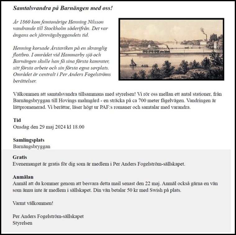Också Per Anders Fogelström-sällskapet vill uppmärksamma sambandet ovan. Det gör vi vid Fogelströmsällskapets julavslutning!
